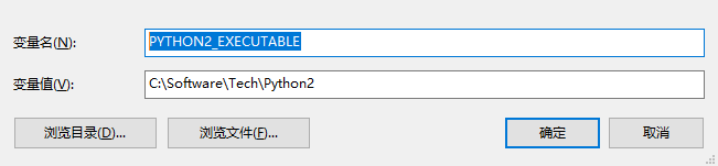 Python2,并将其安装目录添加至PYTHON2_EXECUTABLE环境变量: