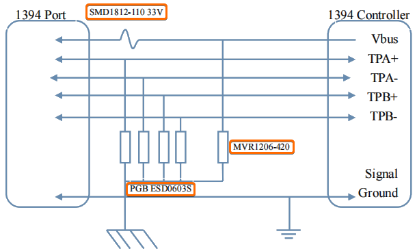 IEEE1394 接口的 ESD 保护