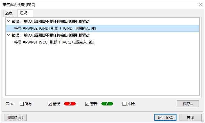 从现在开始,单刀单掷开关的原理图符号与 PCB 封装之间就建立起了关联,每次从原理图更新 PCB 时,就不需要再手动选择封装。接下来再打开原理图编辑器,将上面绘制的单刀单掷开关原理图符号添加到电路里去,并且重新进行【填写原理图符号位号】和【执行电气规则检查】的操作,最后得到的原理图如下面所示: