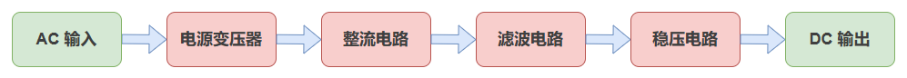 在下面的原理图当中,展示了线性稳压电源的基本结构框图: