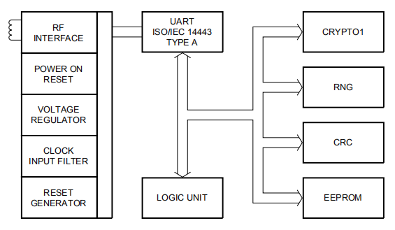 - 三次互相确认(Three Pass Authentication):选定待处理的 IC 卡之后,读写卡装置开始确定当前所要访问的扇区号,并且对该扇区的密码进行校验,在经过三次互相确认之后,就可以通过加密的信号进行通信;而当选择另一个扇区时,则必须重新进行扇区的密码校验;