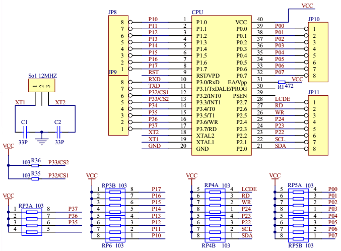 万次),外加两个33pF电容帮助晶振起振,并维持振荡信号稳定。