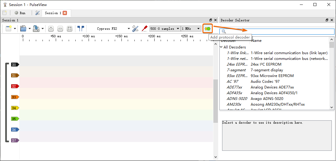 注意:目前 PulseView 上位机支持的总线通信协议解码器可以查阅这个链接。