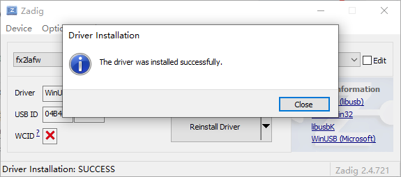 fx2lafw,最后按下【Install Driver】按钮开始安装驱动: